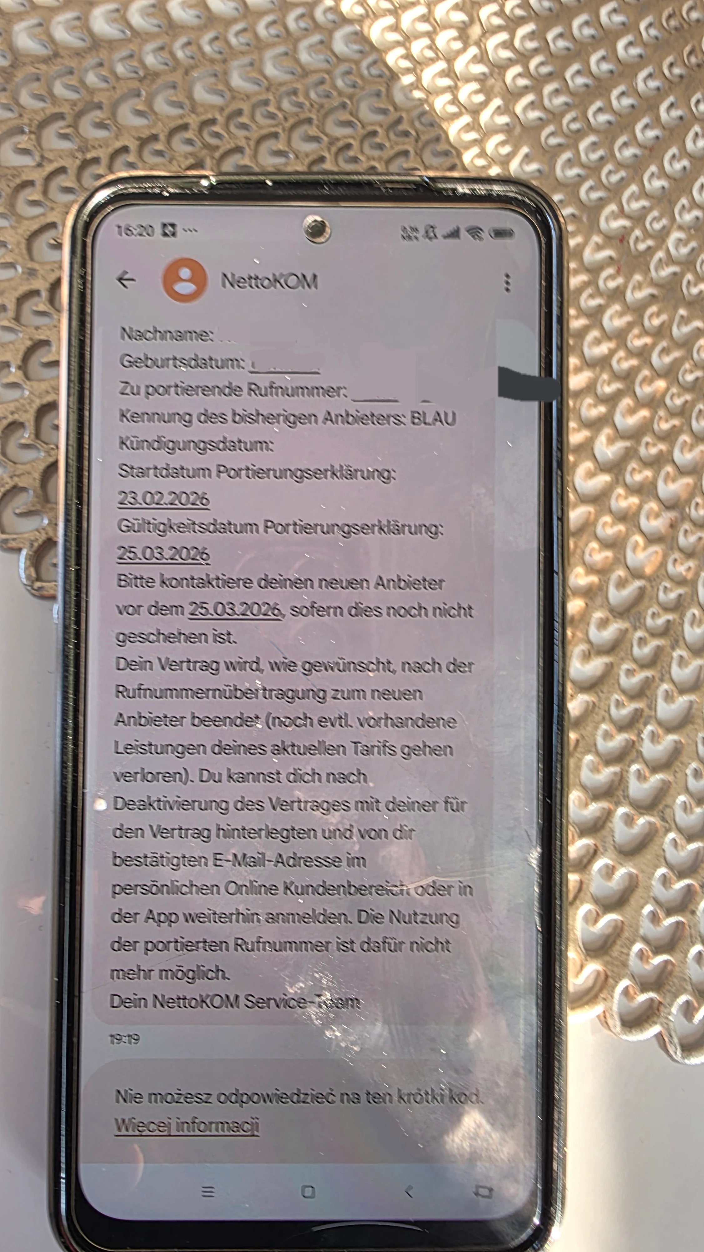 „Meine letzte Nachricht von meinem vorherigen Netzbetreiber Netto lautete wie folgt: Bedeutet das, dass ich ruhig bis zum 23. März warten soll?”