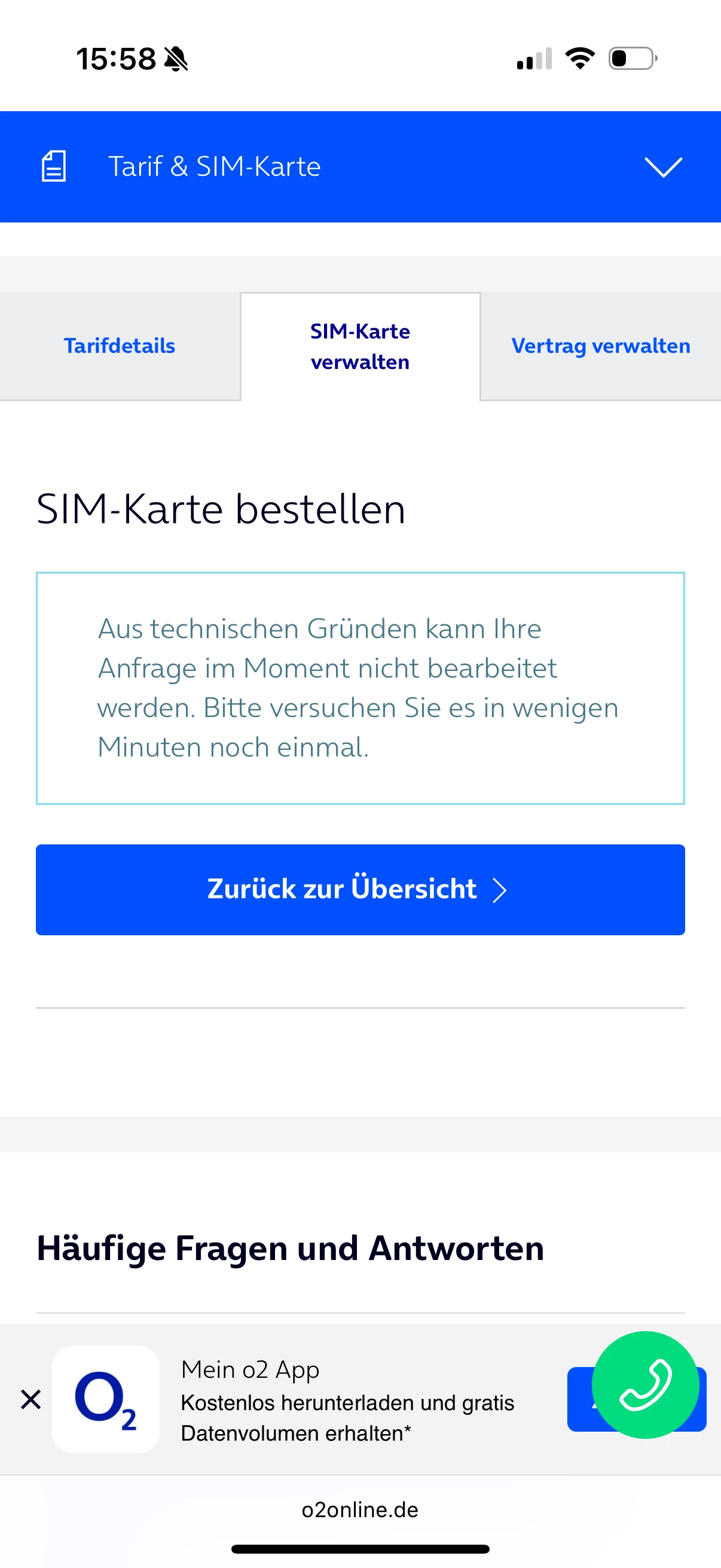 Leider kann ich weder eine Esim bestellen noch eine normale SIM :(