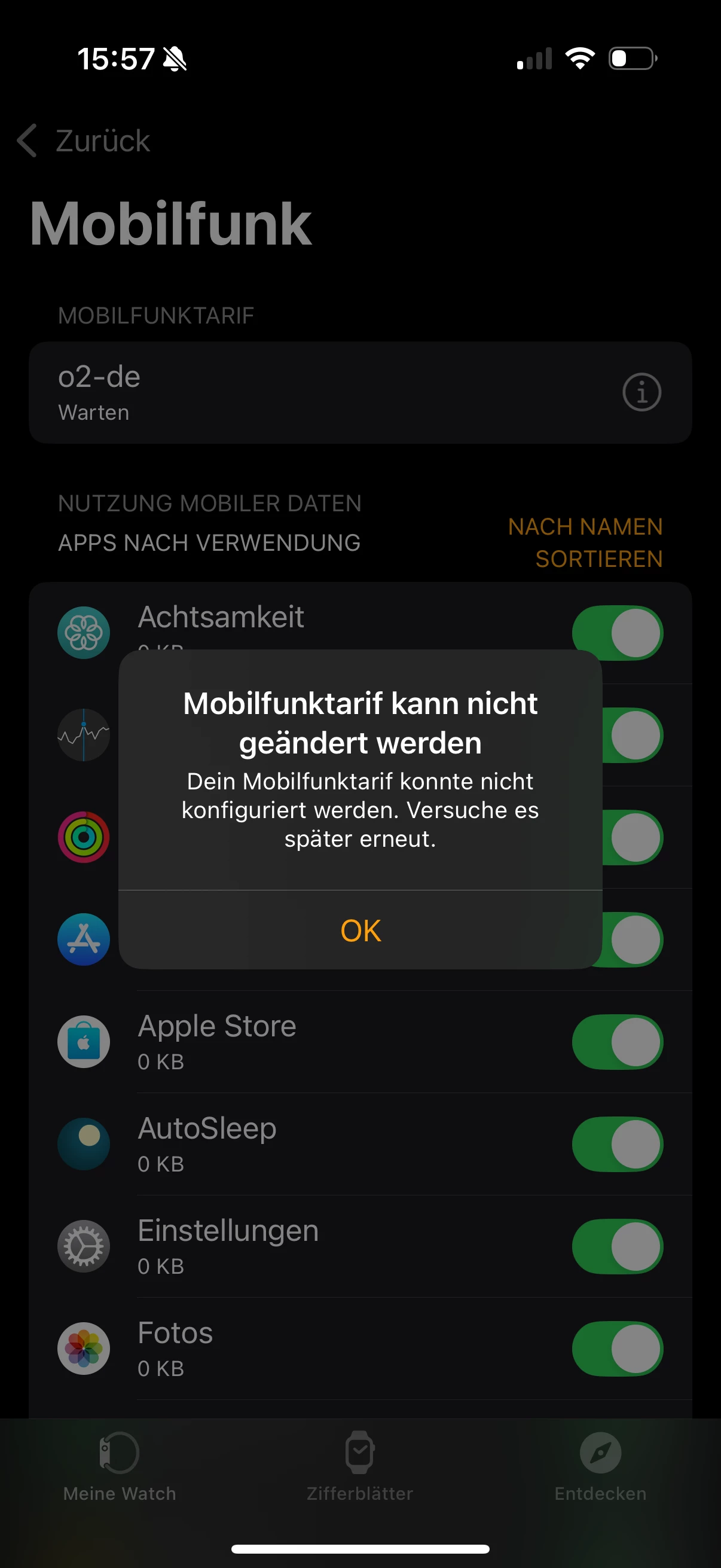eSIM Aktivierung eSim Apple Watch Ultra 2 - steht seit gestern auf „warten“ | O₂ Community