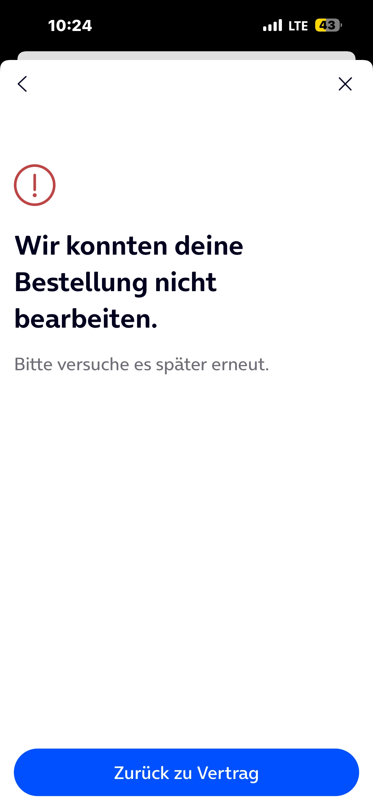 Kannst du bitte diesen ANGEBLICHEN AUFTRAG (siehe Foto) mal löschen, damit ich IRGEND ETWAS mal wieder machen kann… gewollte eSIM neu bestellen, umwandeln oder anderes, was vielleicht Sinn macht in dieser Situation.