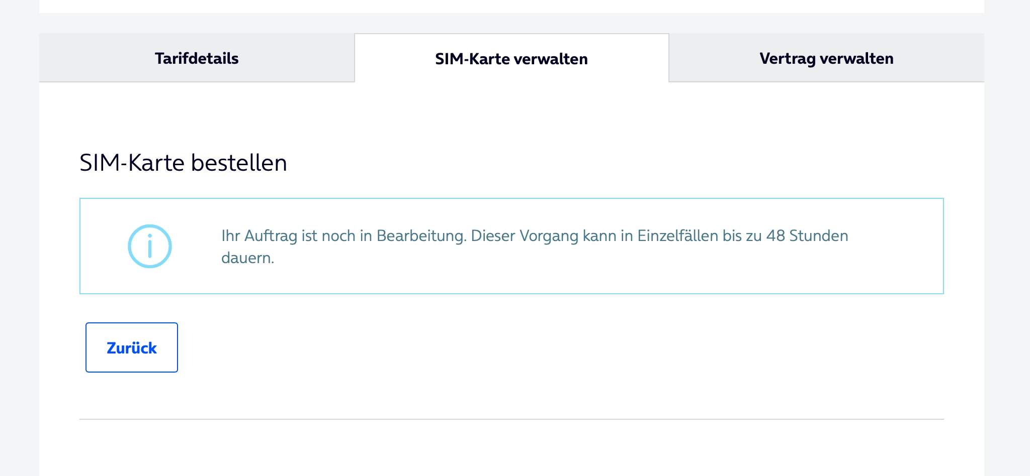 ...die Stornierung des “Auftrags” ...siehe oben ist wichtig, da sonst gar nichts mehr geht hinsichtlich der SIM Verwaltung.