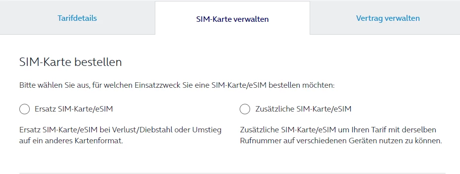 “Bitte beachten Sie: Sobald Ihre neue Ersatz-SIM-Karte aktiviert ist, wird die alte SIM-Karte automatisch deaktiviert.”
