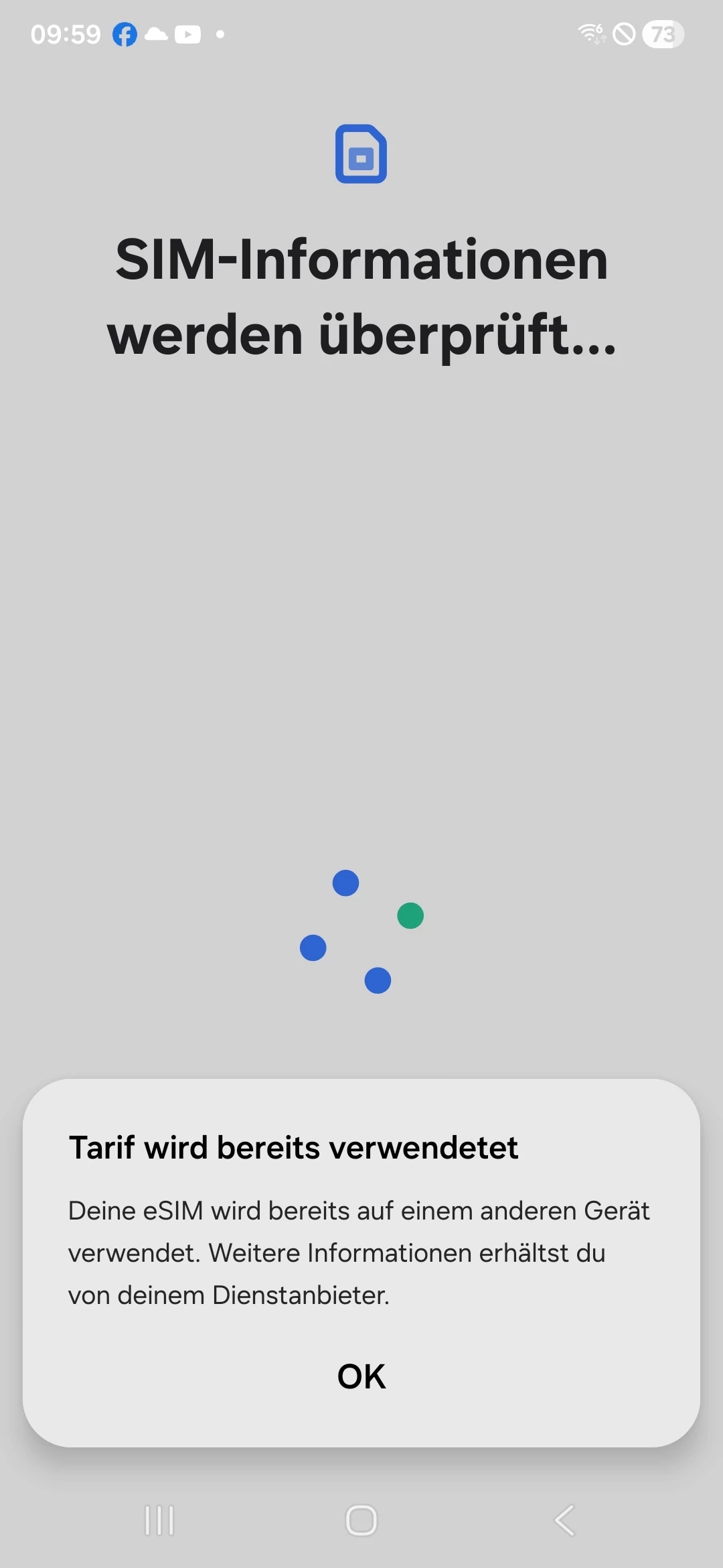Deine esim wird bereits auf einem anderen Gerät verwendet …