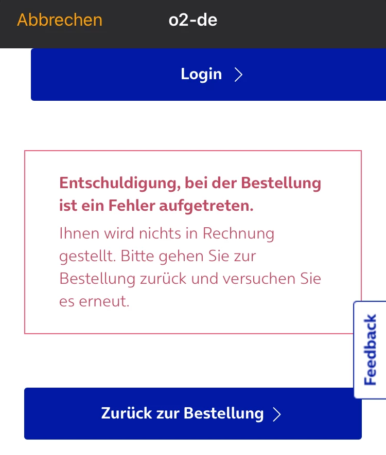 Auch wenn ich die 1. Apple Watch entkopple, aber Mobilfunk beibehalte, bekomme ich bei der 2. Apple Watch die Fehlermeldung “Entschuldigung bei der Bestellung ist ein Fehler aufgetreten.”