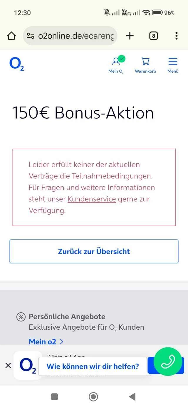 Wichtig: Hierfür ist es erforderlich, dass Du den Bonus auf unserer Webseite im Bereich "Mein o2" beantragst.