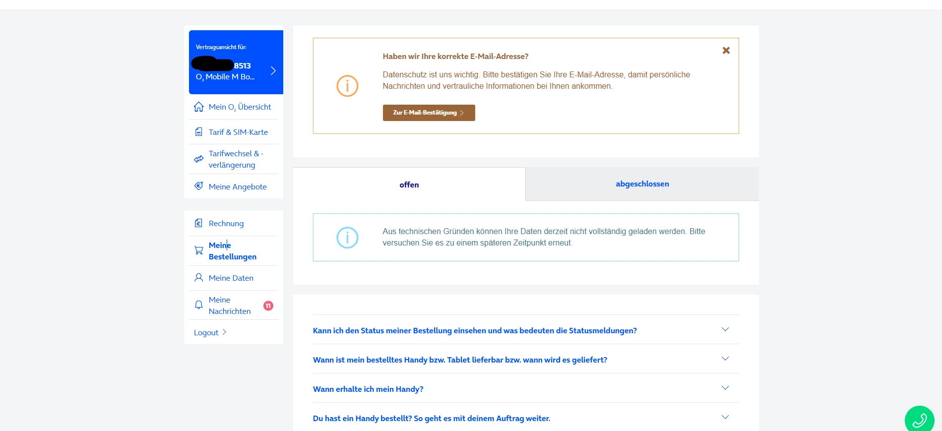 Diese Anzeige ist natürlich ärgerlich, wenn man gerade neue SIM-Karten aktivieren möchte. Hast du es einmal mit einem anderen Browser oder auch mit der Mein o2 App probiert? Wird dir dort die gleiche Fehlermeldung angezeigt?