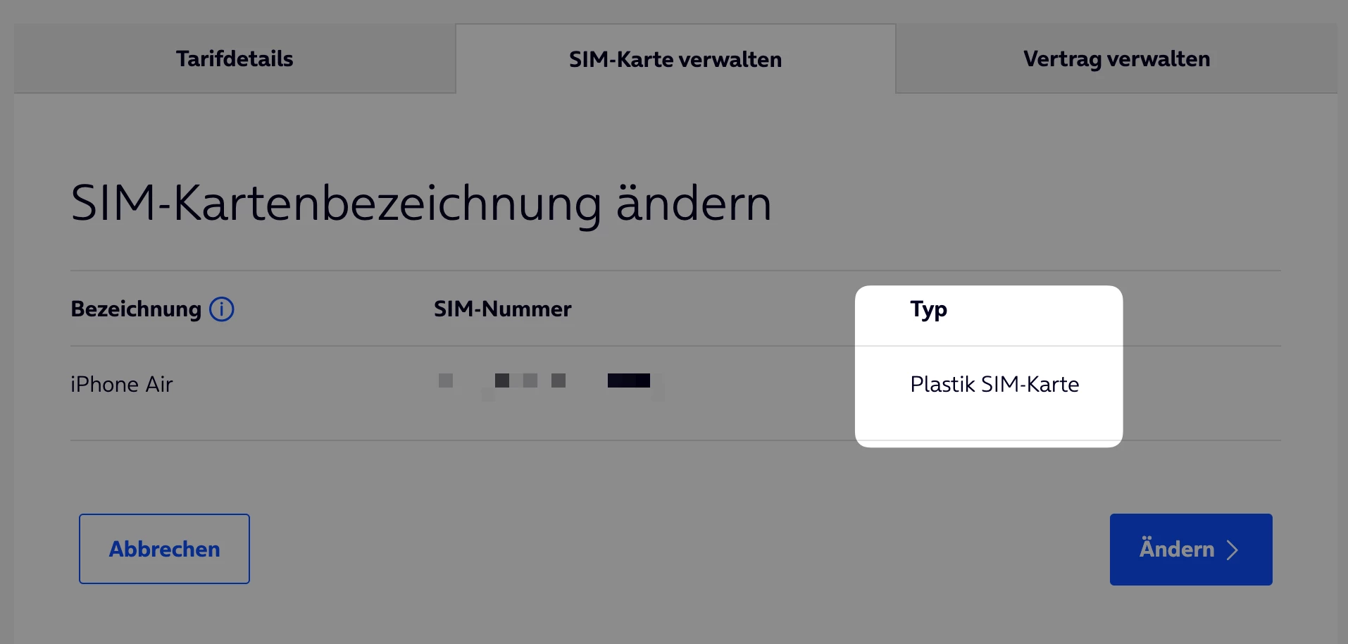 Das iPhone Air konntest du jetzt auch erfolgreich über die andere Karte in Betrieb nehmen, sehe ich das richtig?