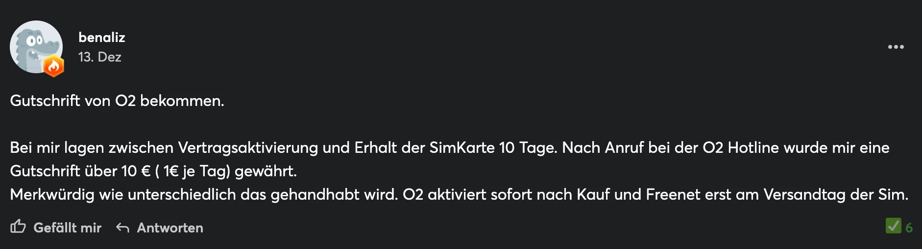 SIM-Karte vor zwei Wochen aktiviert, erst jetzt erhalten
