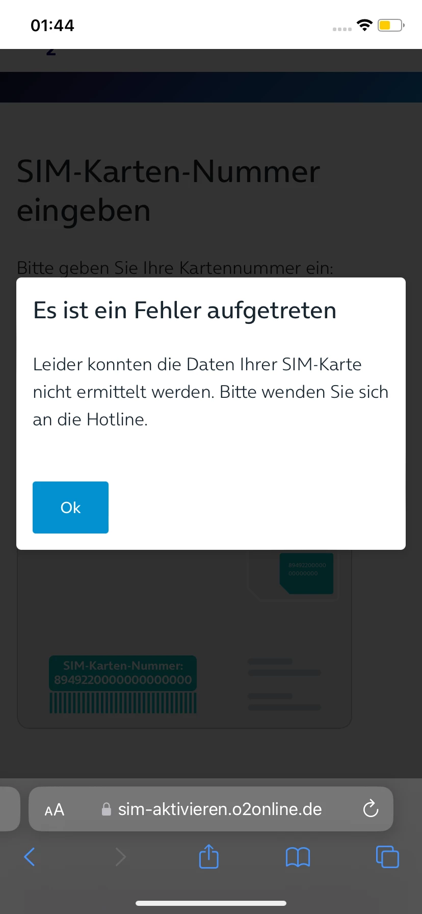ich habe an meinen handy auf der 02 seite bestellt habe dann dannach eine email mit auftrags bestätigung bekomme die sim kam 2 werktage später an seitdem versuche ich sie zu aktivieren aber da steht stängig das die sim nummer nicht gefunden werden kann