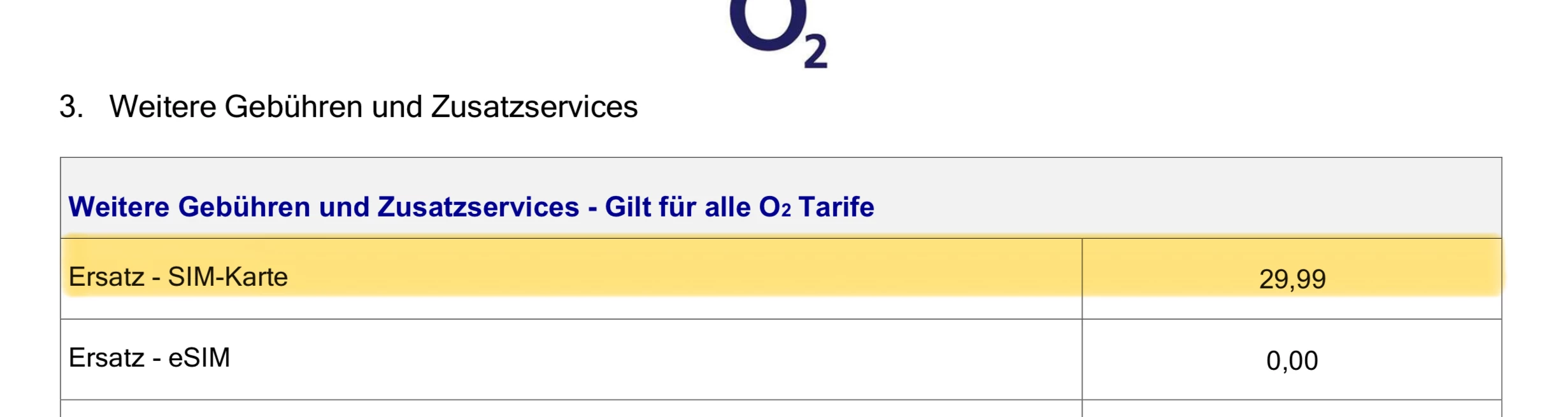 ich habe meine SIM-Karte verloren und war heute im O₂-Shop. Dort hat man mir gesagt, dass eine neue SIM im Shop 35 € kostet. Die Mitarbeiterin meinte aber auch, dass es online kostenlos möglich ist, wenn man die alte verloren hat.