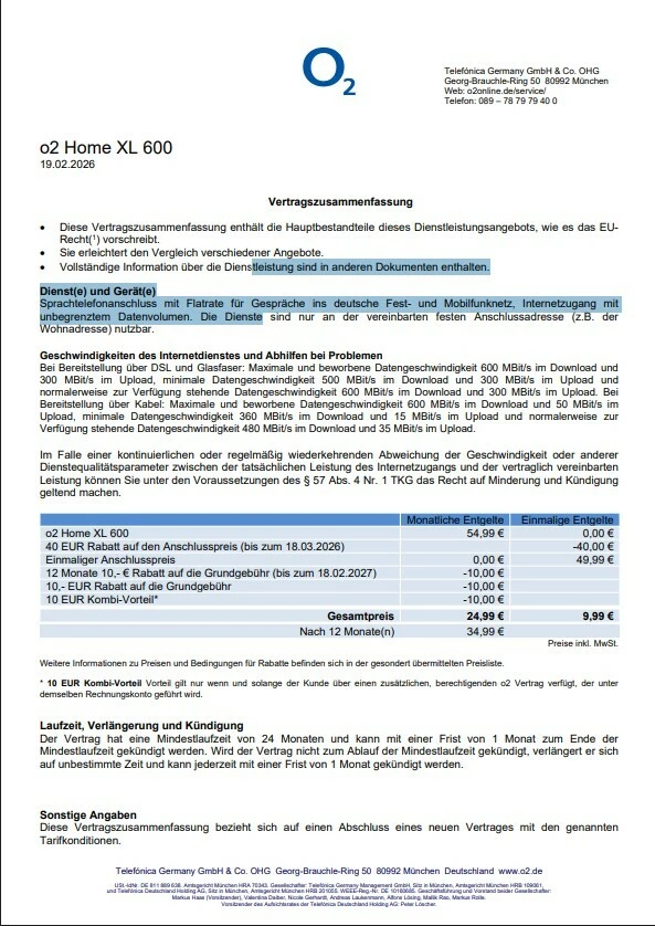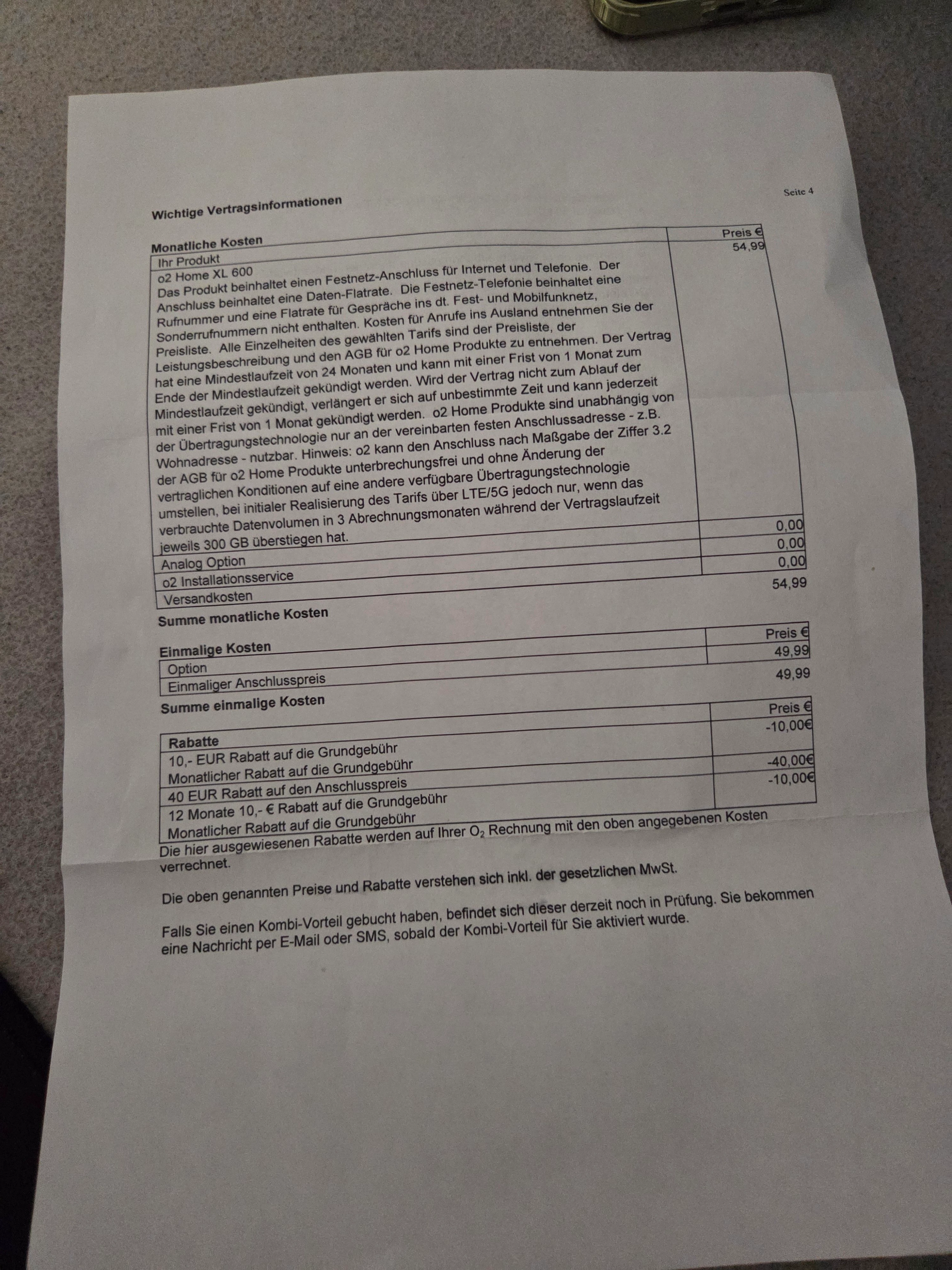es geht um folgendes habe Internet XL 600 bestellt und paar Tage später sind die Unterlagen gekommen, und dort steht das ich 54,99€ zahlen werde, abgemacht waren das ich in den ersten 12 Monaten nur 24,99€ zahlen werde und ab 13 Monat 34,99€ ist da was schiff gelaufen?