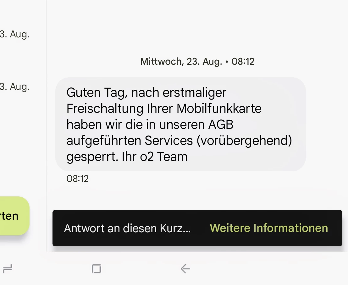 Am 23.8. 2023 habe ich eine SMS bekommen mit dem Inhalt: