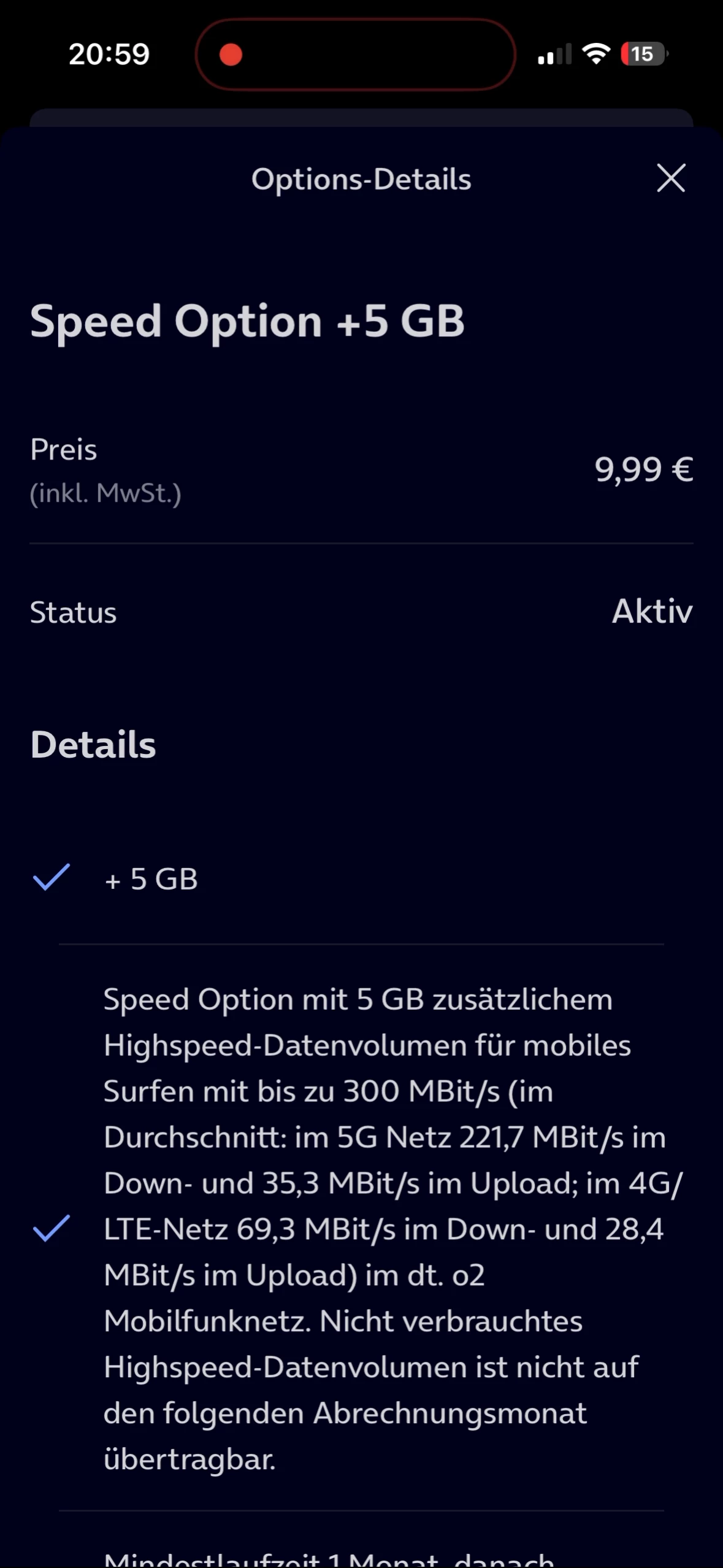 Wenn du in der Speed Option im Kundenportal auf Details klickst, sollte dort Option abbestellen stehen. Wenn nicht ist sie schon in Abbestellung und wird zum Rechnungslaufende deaktiviert.