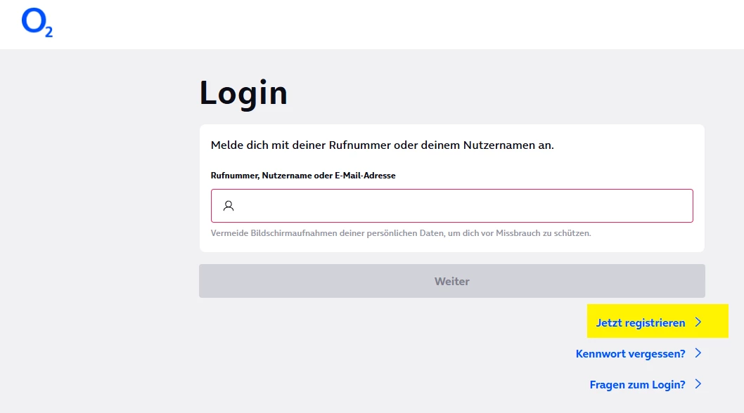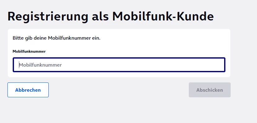 Gehe ich jetzt auf “Jetzt registrieren” und gebe die Nummer ein werde ich direkt hierher weiter geleitet: