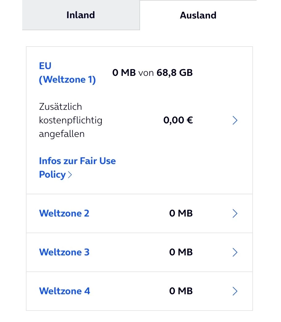 Sieht bei mir so aus, obwohl ich in Deutschland ja selber auch schon Daten verbraucht habe …