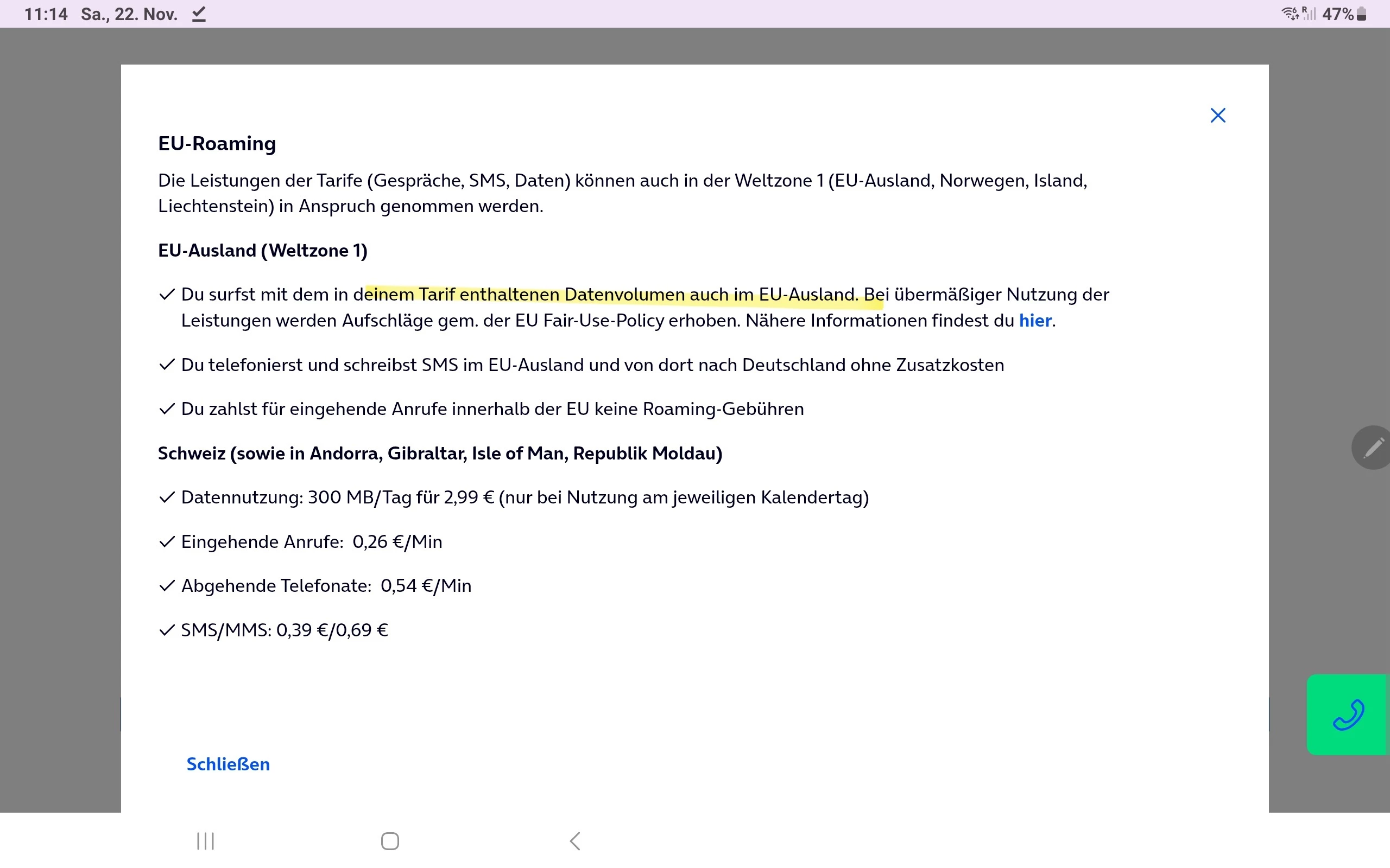 Wenn ich das gewusst hätte, hätte ich mit Sicherheit das Datenvolumen nicht erhöht, da ich in Deutschland nicht mal 10GB benötige!