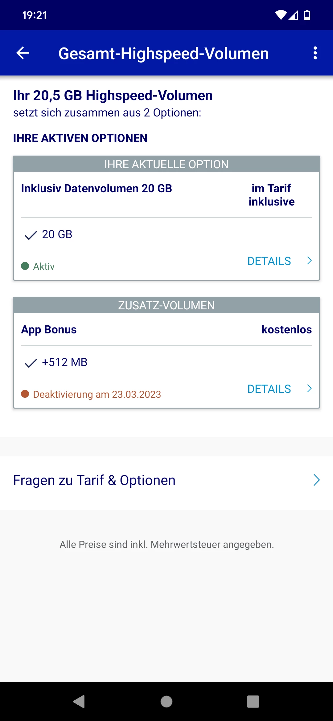 in der App sind nur die 20 GB Datenvolumen des Vertrages aufgeführt.