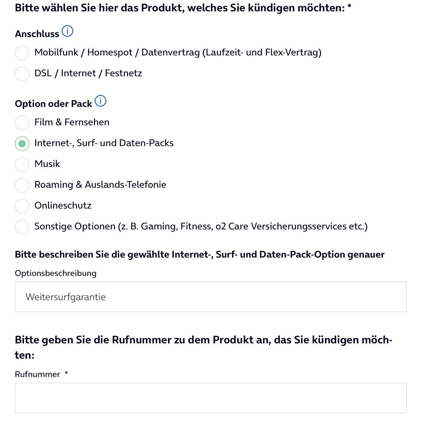 Bitte um Kündigung der o2 Weitersurfgarantie