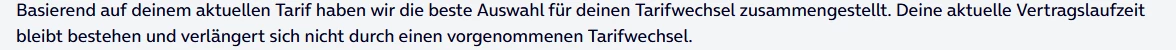 Hier steht Tarifwechsel, die Vertragslaufzeit bliebe bestehen