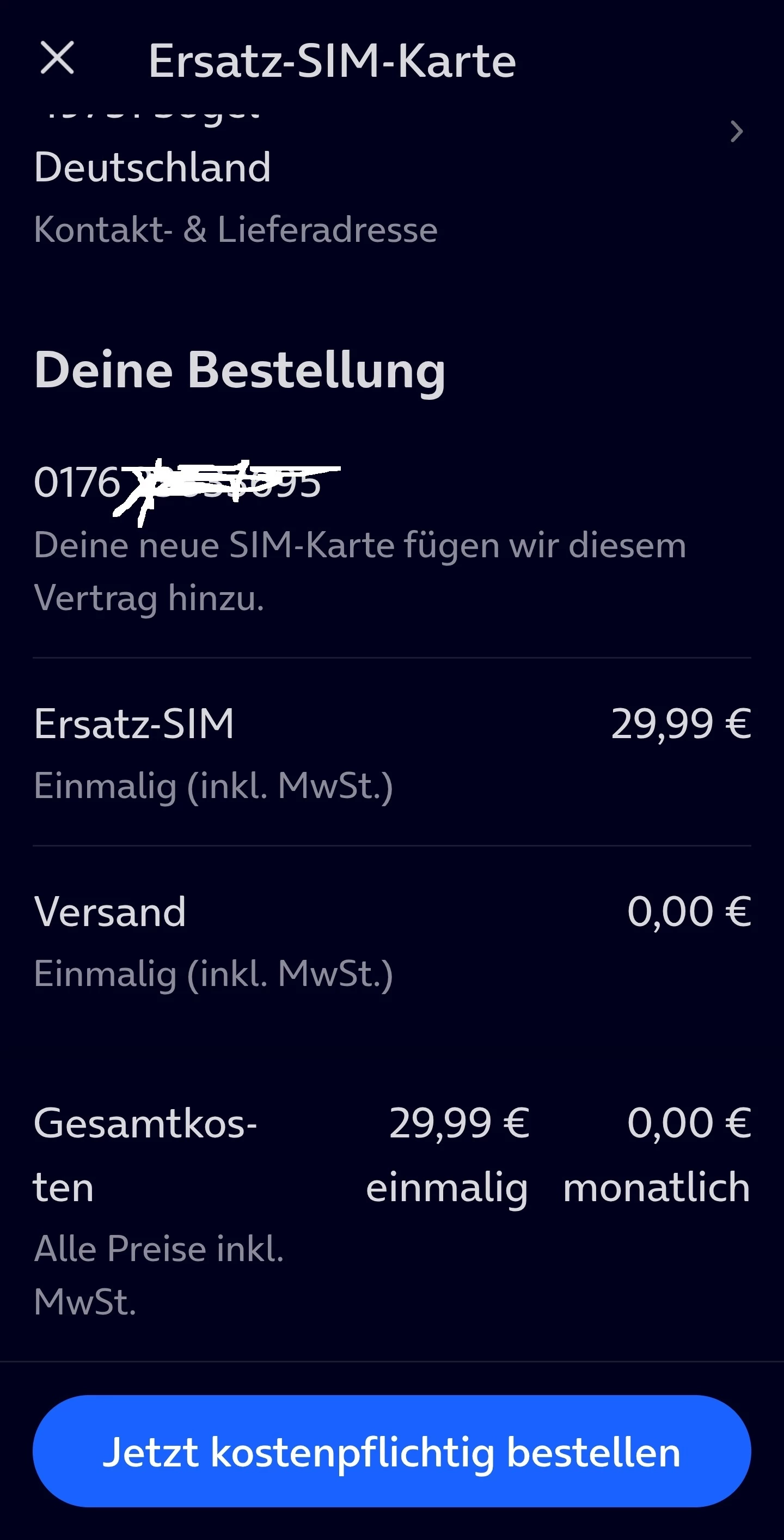 einen kostenlosen SIM-Tausch können wir regulär ebenfalls nicht vornehmen, online sollte es automatisch gehen, falls dies nicht der Fall ist, können wir für dich eine Guthabenbuchung beauftragen.