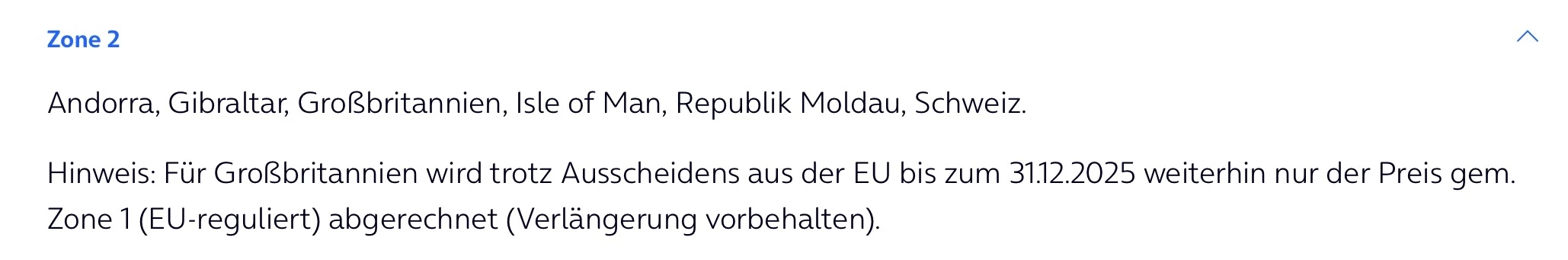 ich habe dazu eine Rückmeldung erhalten, offenbar lässt es sich in der Tabelle nicht anders darstellen, da Großbritannien ja offiziell zur Weltzone 2 gehört. Wenn man aber auf das kleine i neben der Roaming Option klickt, wird die Ausnahme angezeigt.