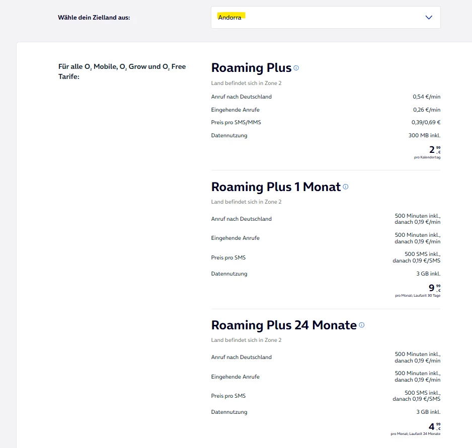 Hi, ende Mai muss ich für einige Tage nach Andorra (Weltzone 2). In diesem Zusammenhang habe ich Fragen sowohl zum Paket a) Roaming Plus, als auch zum Paket b) Roaming Plus 1 Monat.