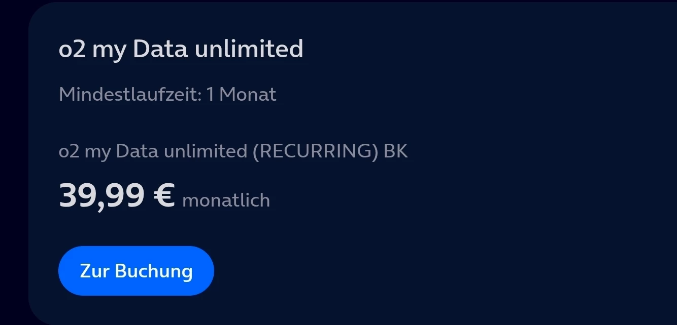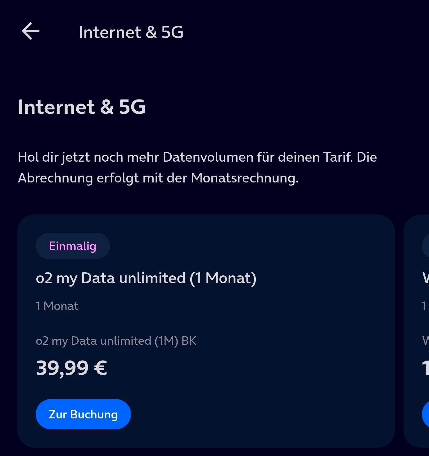 Und deshalb gibt es die my Data unlimited Option auch zweimal:  einmalig und monatlich. Siehe Screenshot o2-App (Android)