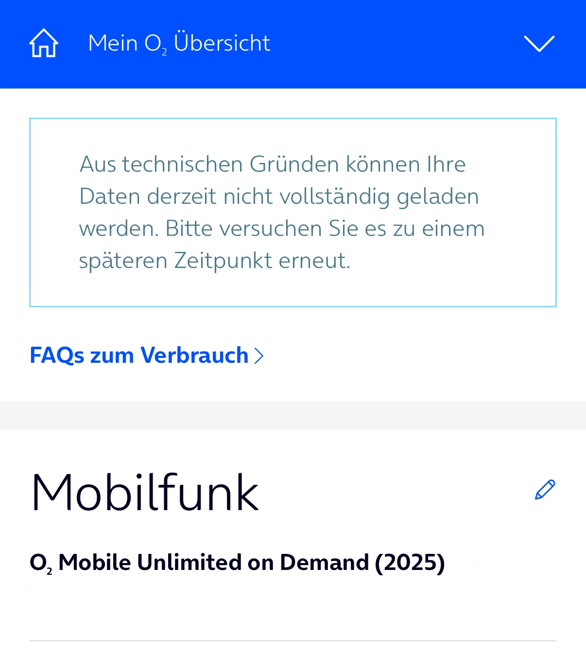 Hallo O2 Kundenbetreuer … seit einigen Tagen bekomme ich online eine Fehlermeldung