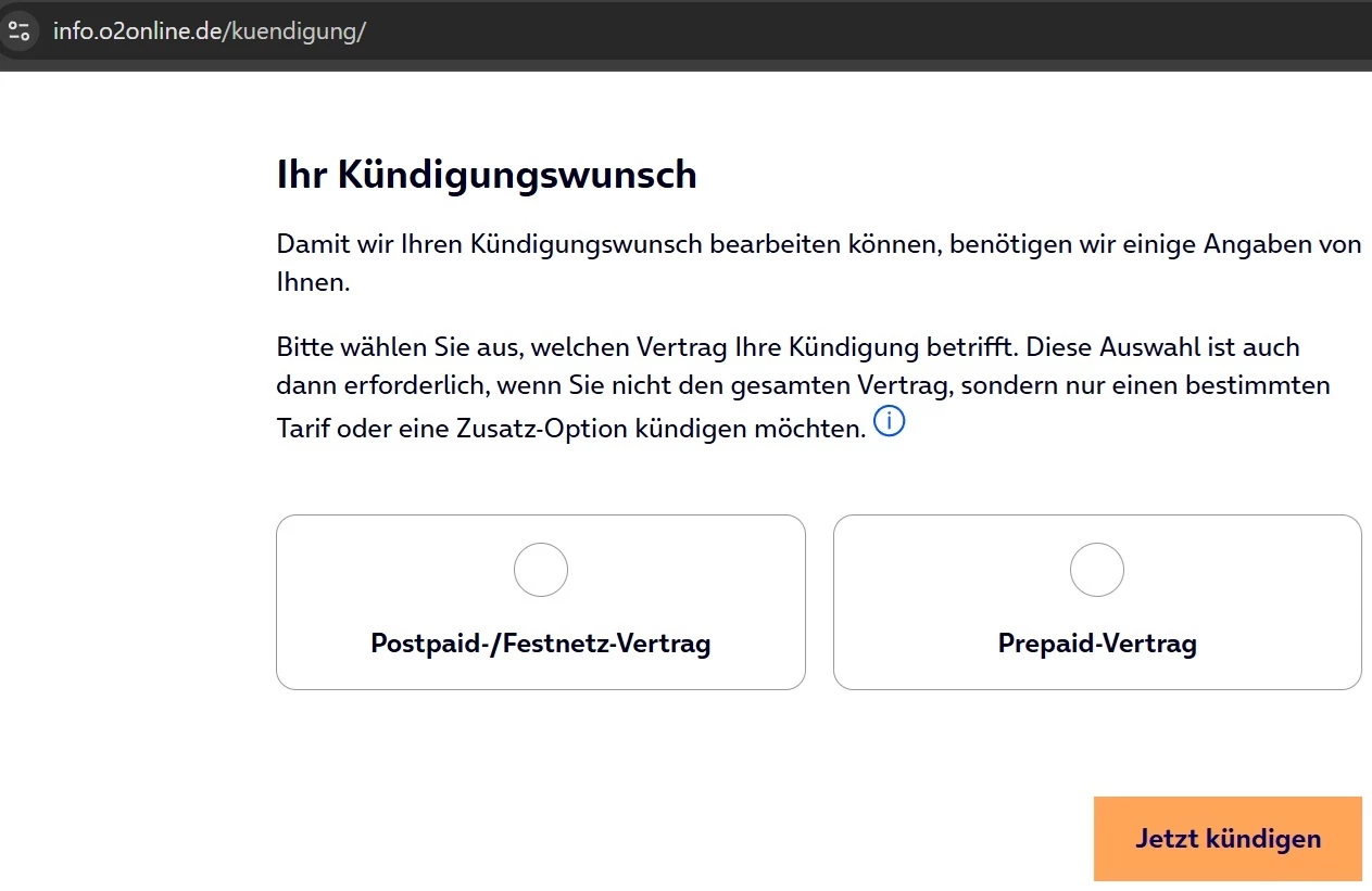 Ich weiß nicht, was ich auswählen soll, wo meine IP120s sich befinden. Ob ich die IP120s vorher oder danach bezahle? Danach? KA. Ich wage es nicht auf Kündigung zu klicken, weil ich nicht weiß, was ich dann kündige. Die O2-Seite finde ich im Moment unübersichtlich und tricky. Auf dem Link bekomme ich die folgende Auswahl: