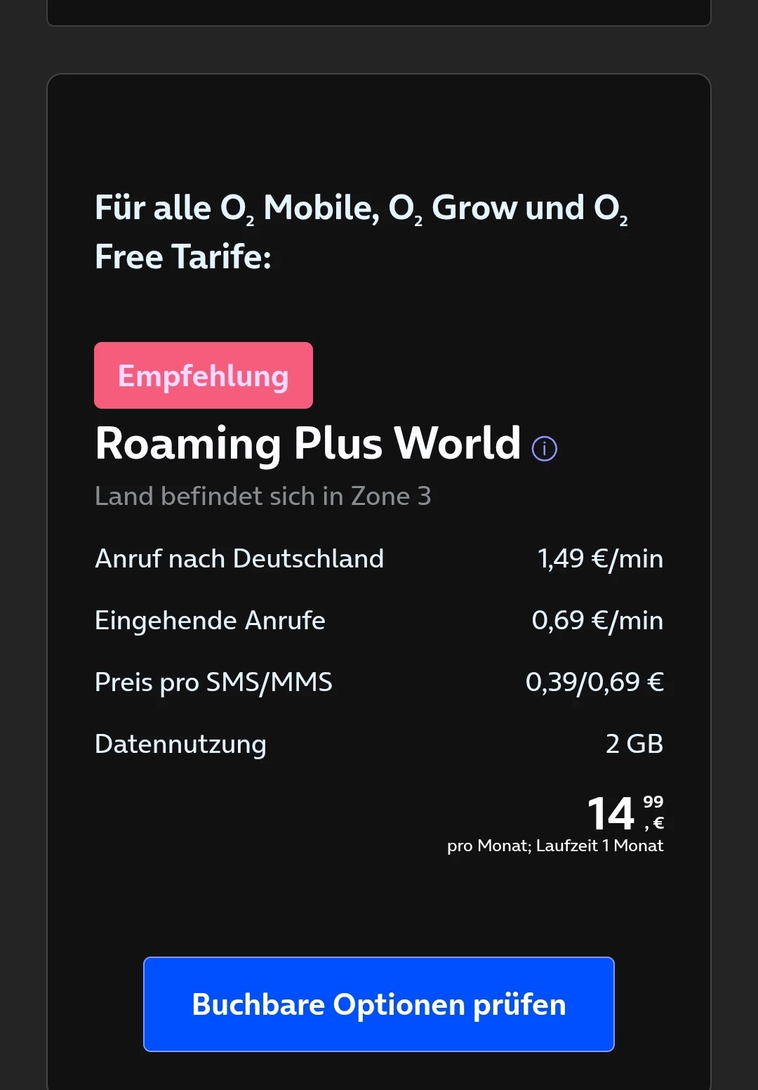 Was ist dann dieses Roaming plus world was ich gebucht habe?