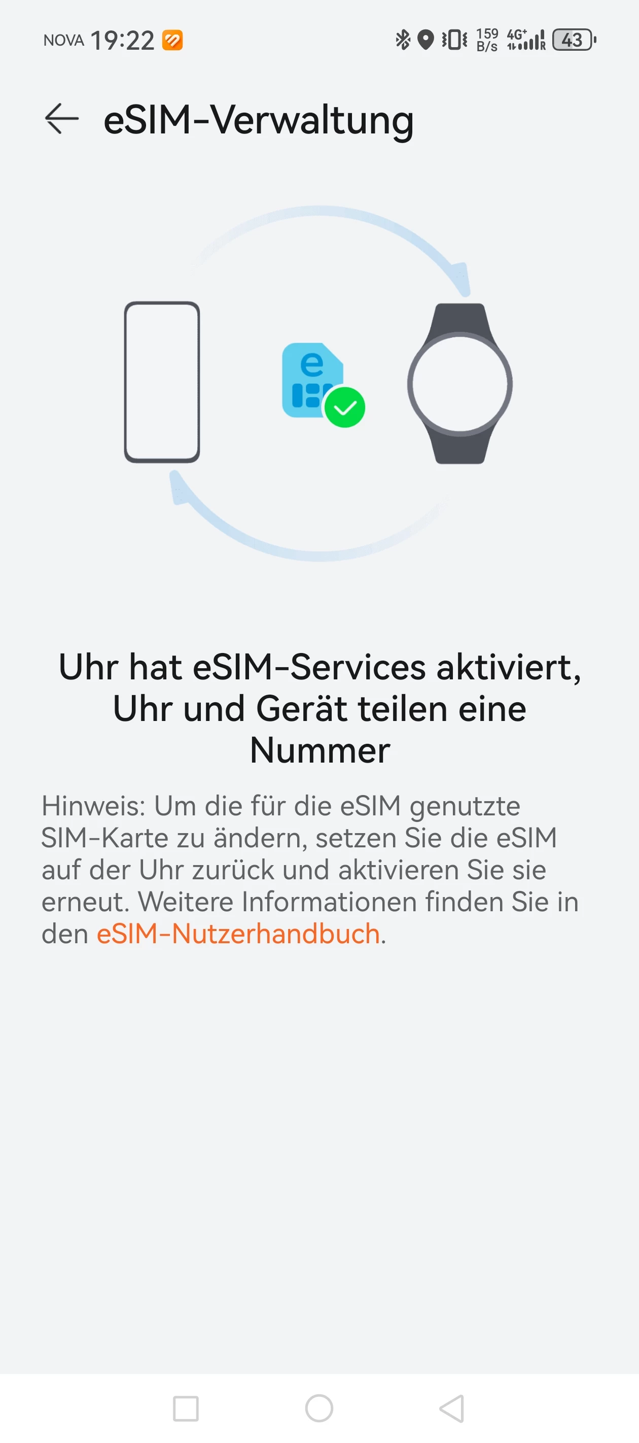 Ich habe nur die physische Hauptsim im Handy und die eSim in der Smartwatch aktiv.