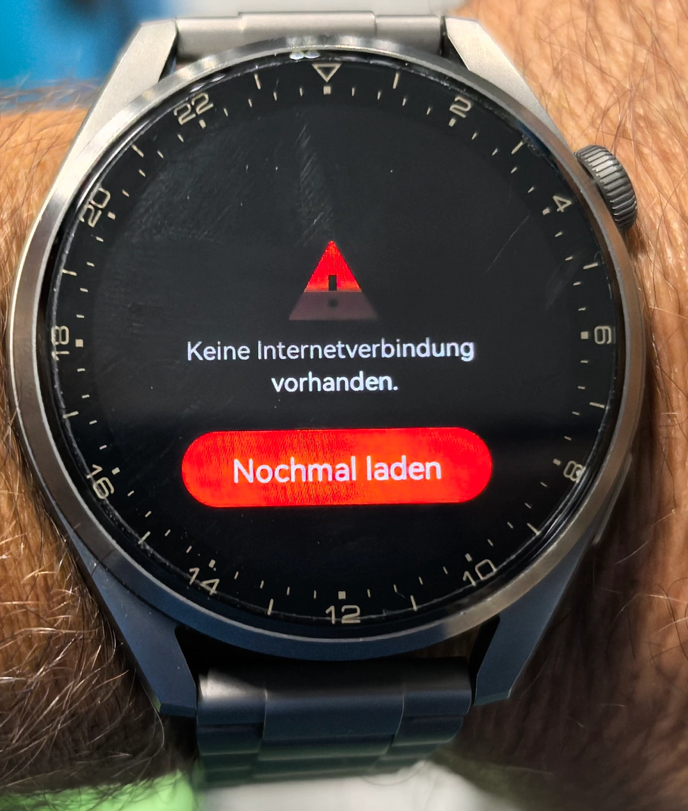 Ich bekam wieder folgende Meldung und konnte nach wie vor keine Netzverbindung mit der Smartwatch aufbauen.