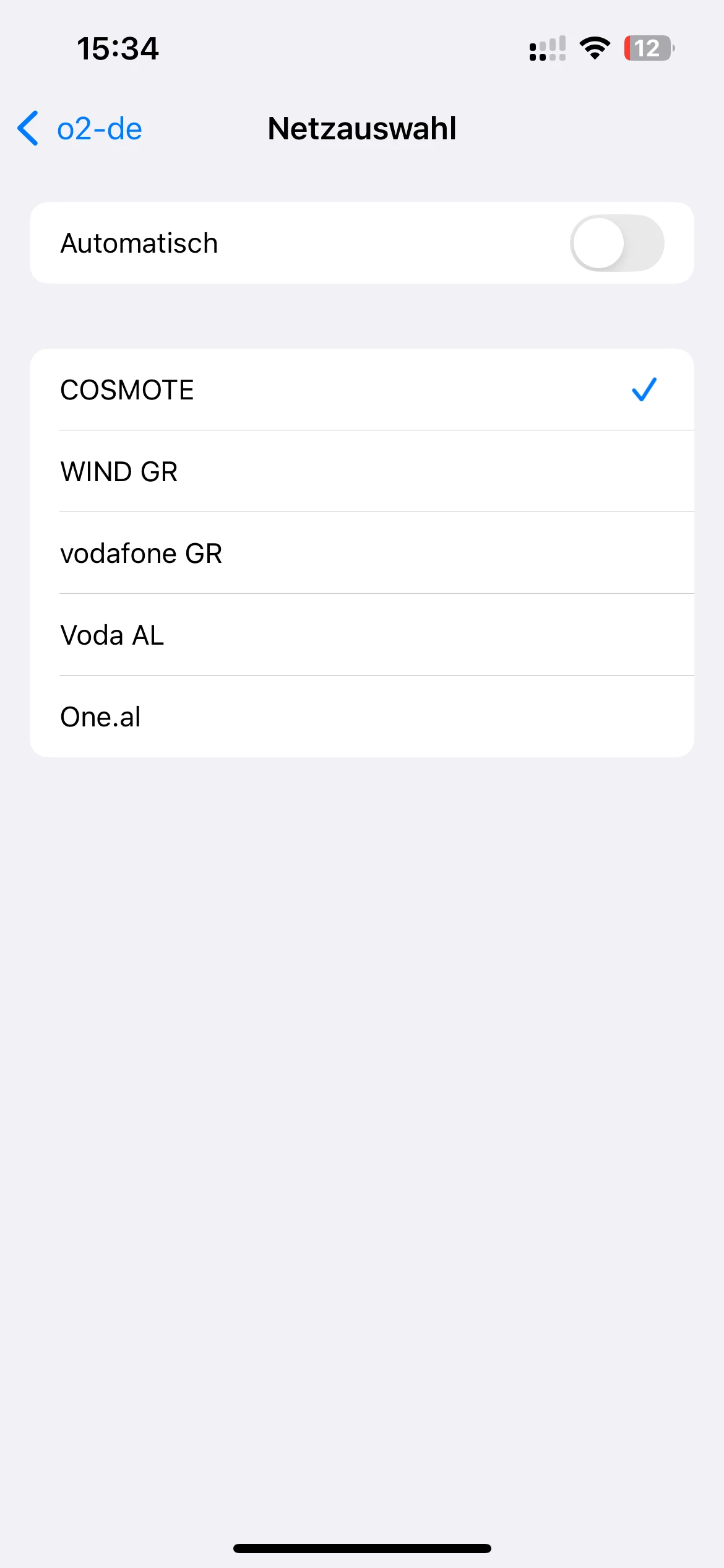 ich habe zwei Sim Karten (privat und berufliche Phone Nummer). Für beide Karten habe ich die automatische Netzwahl deaktiviert und CosmoteGR manuell eingestellt.
