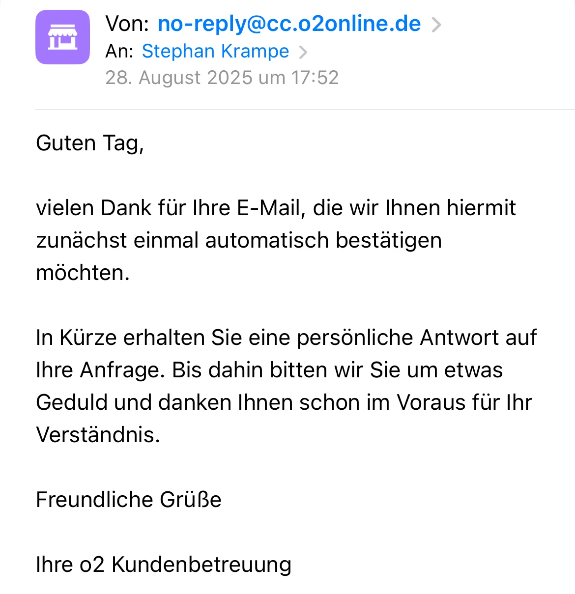 O2 hat keinen allgemeinen Kundenservice per Mail,