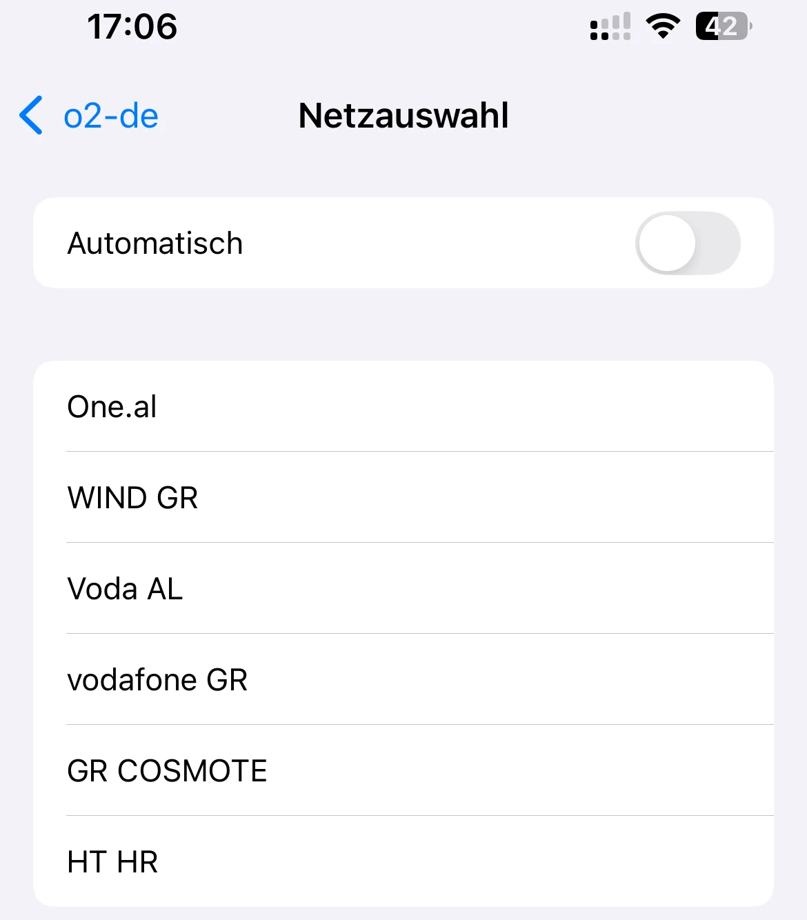 Was ist automatisches Roaming? Wenn du dich manuell zB bei COSMOTE GR einwählst, kommt man nicht in andere Netze. Welches Smartphone nutzt du?