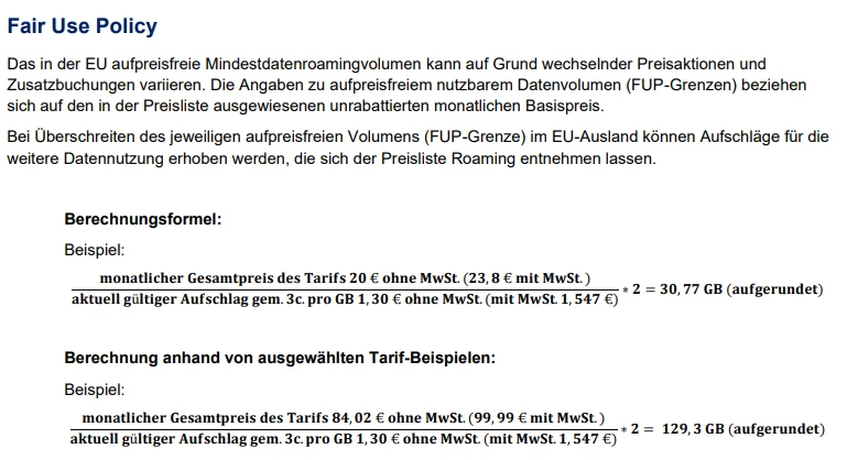 Die Bestimmungen der EU Fair Use Policy beim EU-Roaming sind fester Bestandteil unserer Tarife, die bereits bei Vertragsabschluss vereinbart wurden.