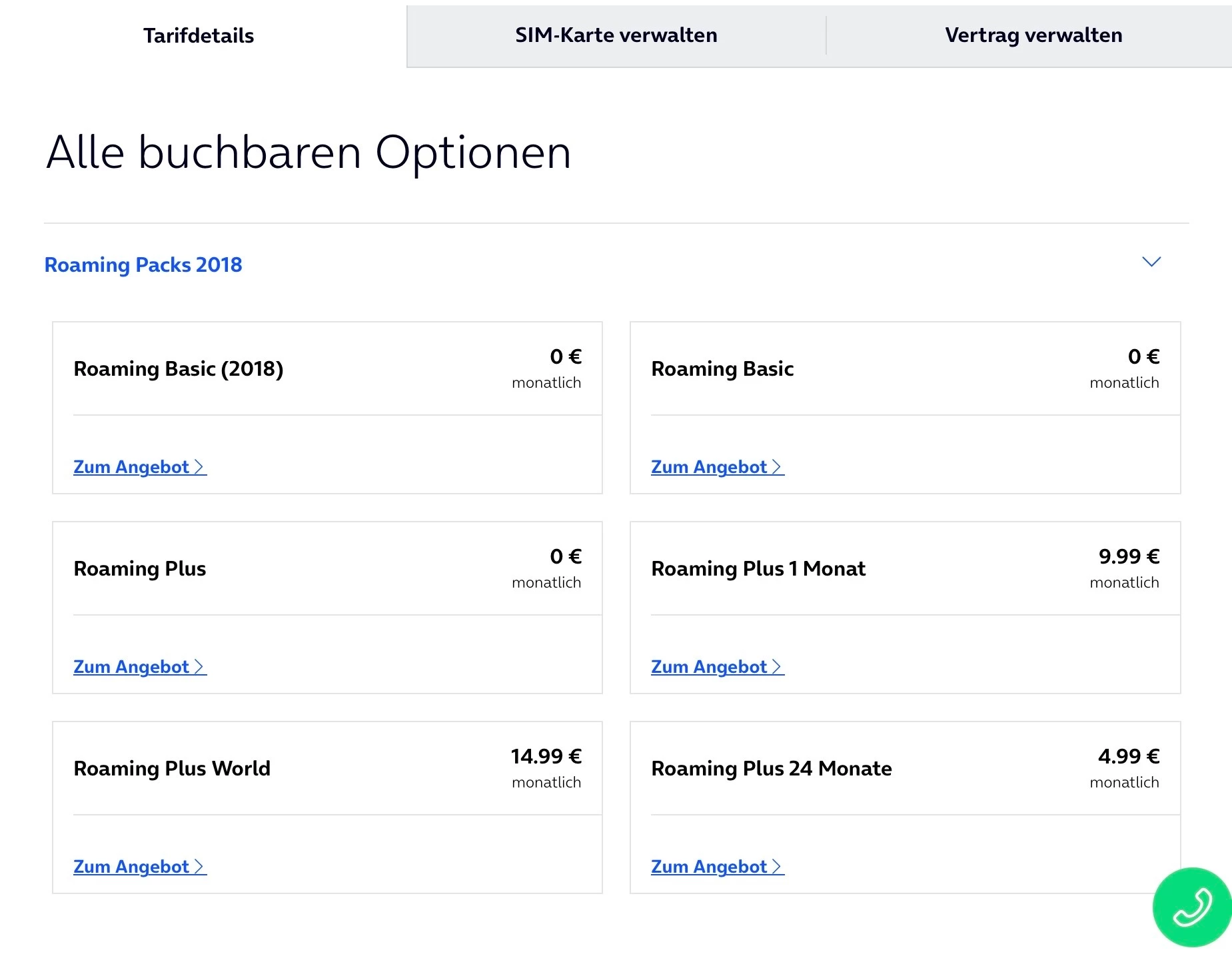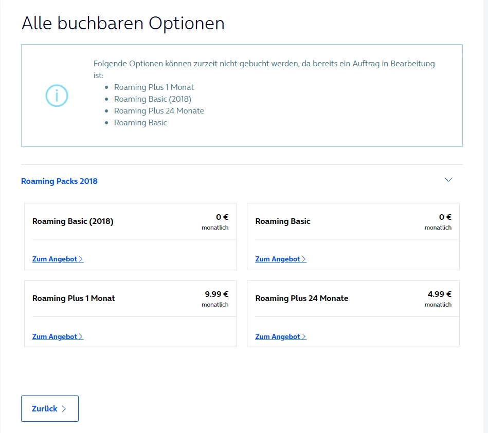 Hallo ich wollte das “Roaming Plus World” für 14,99Euro (einmalig) buchen. Die Dame in der Hotline meinte es wäre ein alter Vertrag und könnte somit es buchen.