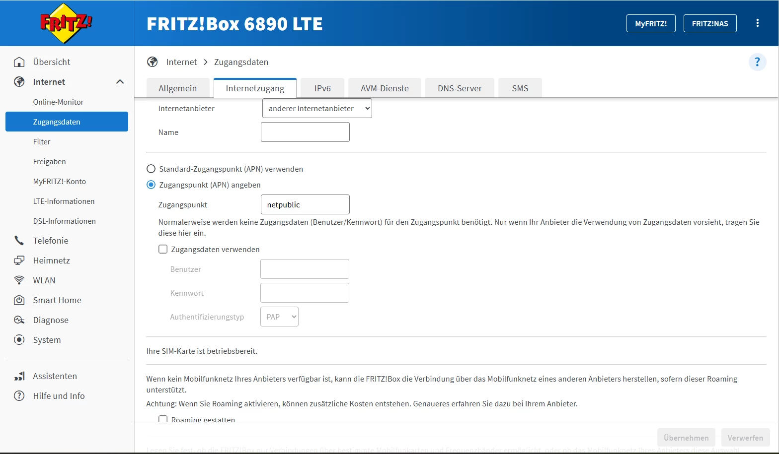 ich möchte mich bei dir / euch für die schnelle Hilfe herzlichst bedanken! Die Eingabe, siehe auch Ablichtung, APN auf “netpublic” nach Werksreset hat sofort bei meiner fritzbox 6890LTE funktioniert! Ich hoffe sehr, dass ich hier auch mal helfen kann. Vielen Dank und schöne Grüße aus Loccum, Willi😘
