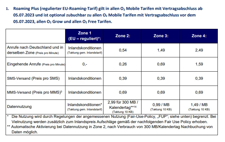 Roaming Plus 2,99/Tag bei Nutzung Weltzone 4