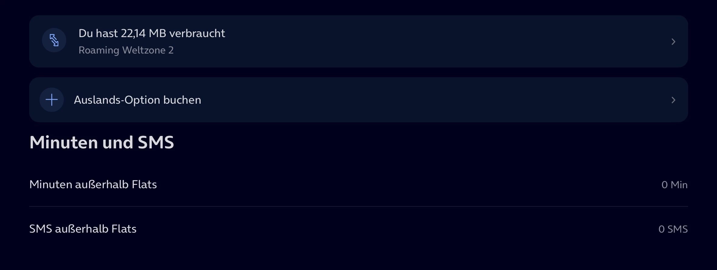 Hallo ​@MM1893, danke für deine Nachricht. Im System sehe ich aktuell auch keinen Verbrauch, der zu deiner Auslandsnutzung passt.