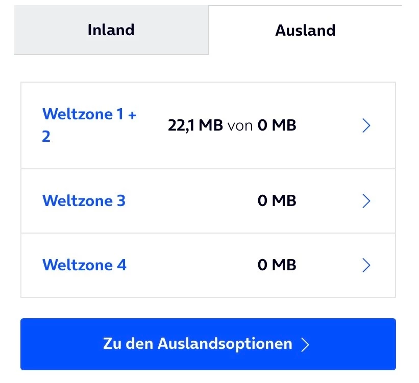 Wird der Datenverbrauch im Ausland nicht angezeigt? Ich war ja am Donnerstag in der Schweiz und hab da definitiv Daten ververbraucht. In der App und Online steht aber bei Weltzone 2 0MB...