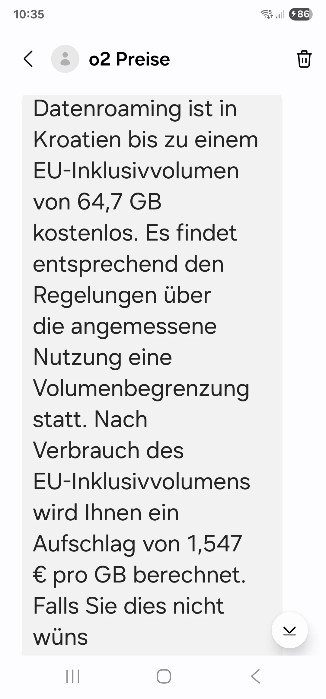 Hast du den o2 Mobile XL (2024)? Dann hättest du nur begrenztes kostenloses Datenvolumen [64,7GB] in der EU.