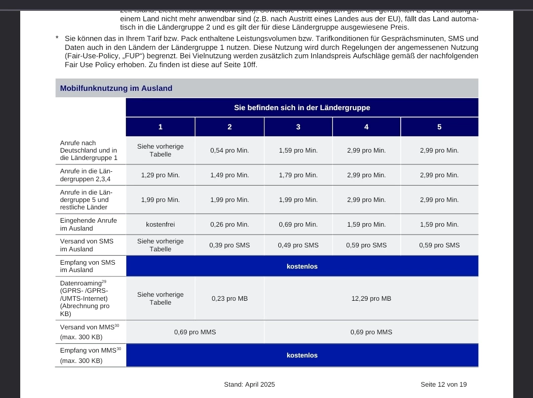 Nun meine simple Frage: Wie setzen sich diese Kosten zusammen? Ich strebe keine Rückerstattung oder ähnliches an, schließlich bin ich selbst Schuld daran, dass ich vergessen habe mein Handy während der Tour in den Flugmodus zu setzen. Alles was ich will ist, verstehen wie der Betrag zustande kommt.