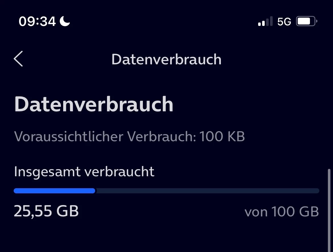 Neustart, Abmeldung und Löschung der App hat leider auch nichts gebracht. Auf dem Startbildschirm der Seite ist mein inklusiv Datenvolumen zwar jetzt bei verbrauchten 0GB, wenn ich dann aber darauf gehe zeigt es mir an wie viel ich tatsächlich davon schon verbraucht habe. Dieses geht auch immer weiter hoch.