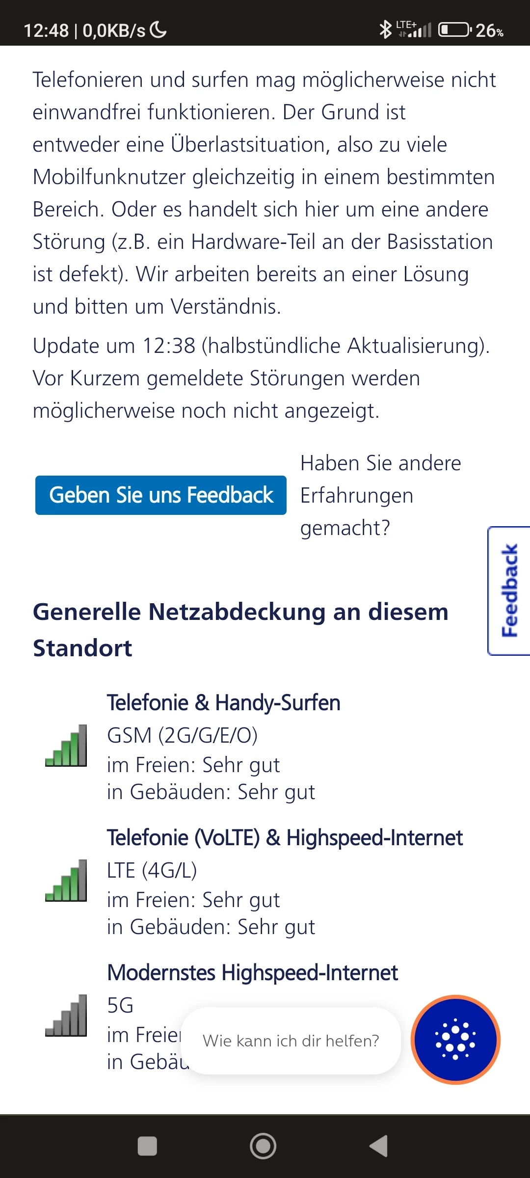Wie sieht es an der Adresse den generell mit der Netzabdeckung aus und ist laut Livecheck ggfs. eine Störung bekannt?