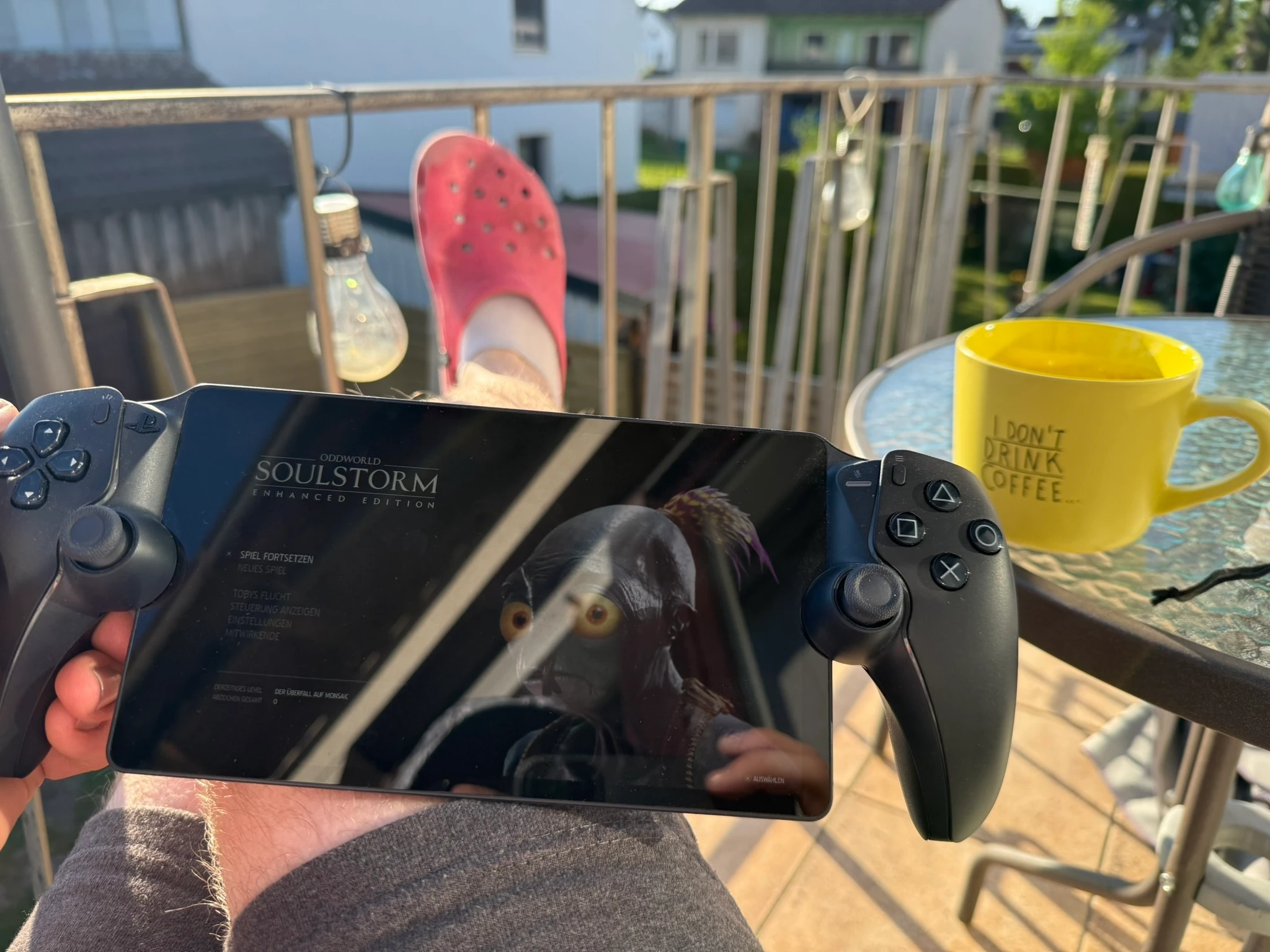 Um nun zum Abschluss zu kommen, möchte ich sagen, dass ich mir leider die Portal  mehr wie eine Switch oder den Vorgängern vorgestellt habe. Aber das ist bedauerlicherweise nicht der Fall. Das sollte unbedingt beim Kauf beachtet werden. Ihr benötigt unbedingt die PS5 dazu, aber nicht zwingend einen TV. Ihr spiegelt lediglich eure Konsole und nutzt sie dann auf der Portal. Um gemütlich wie ich bei tollem Wetter auf dem Balkon zu entspannen und dabei zu daddeln oder um sich mit der Frau nicht zu streiten, während sie Serie schaut, reicht sie allemal aus und bietet echt guten Spiele Komfort, nur geht das alles eben nur in den eigenen vier Wänden. Die Portal kann nicht mit zum See oder in den Park genommen werden. Das finde ich leider schade.