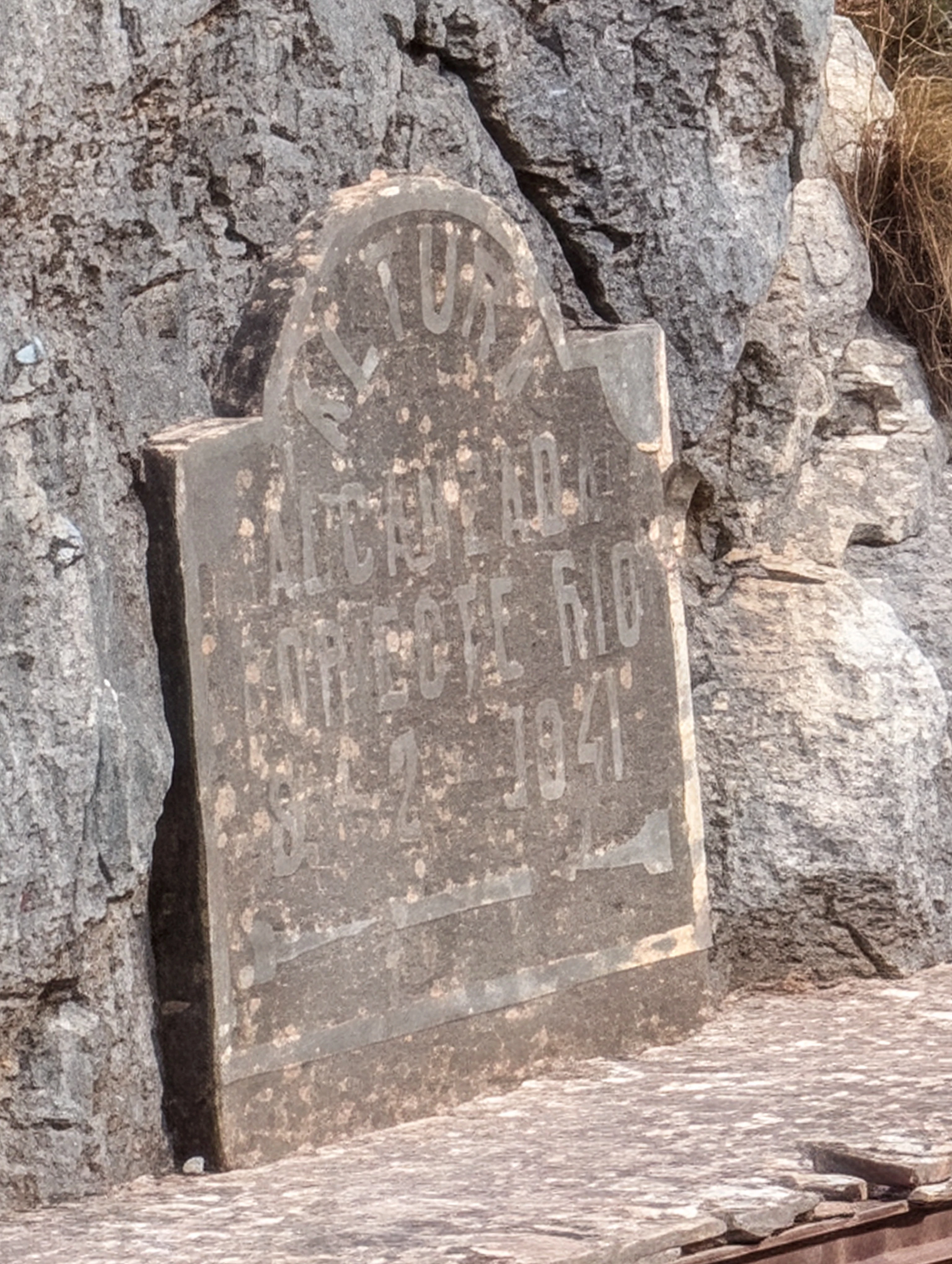 Gedenkstein am Felsen, ohne zoom kaum zu erkennen (nächstes Bild)...