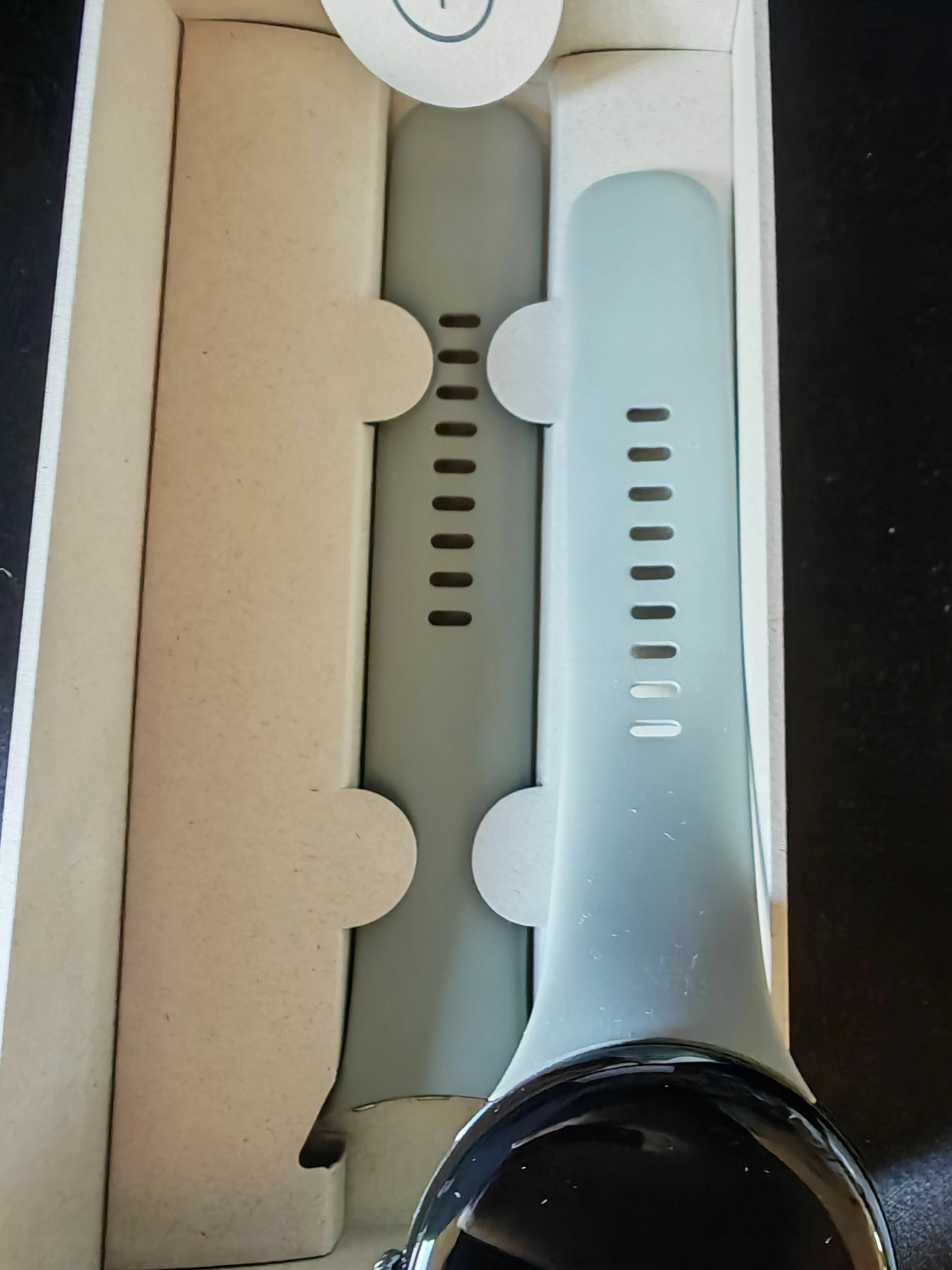 Es werden zwei verschiedene Armbandgrößen mitgeliefert. Ich habe die kürzere Varinate angebracht, was durch einen Schiebemechanismus passiert und gut hält. Bei mir waren noch 2 Löcher frei zum enger machen, und eines wenn die mit der Uhr trainiert habe. Da meine Handgelenke glaube ich, einen normalen Umfang haben, können Menschen mit sehr dünnen Handgelenken mit den Pixel-eigenen Armbändern Probleme bekommen, da sie die Uhr nicht richtig fest bekommen und die Uhr ist schwer, dreht sich dann also leicht. Zum Glück gibt es heutzutage genügend andere Armbänder für ein paar Euroen.