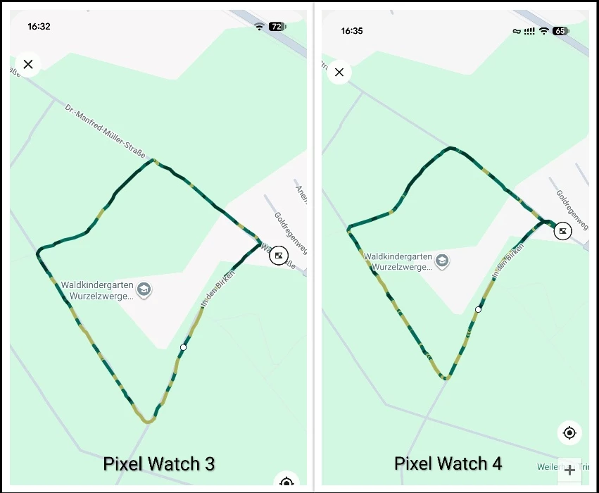 Die aufgezeichnete Strecke sieht zwar ziemlich identisch aus, aber wie schon geschrieben: Es dauert einfach seine Zeit, bis die Pixel Watch 3 überhaupt startklar ist.