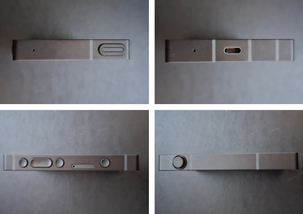 Links oben Kopfseite, rechts oben Unterseite, links unten Rechte-Seite und rechts unten Linke-Seite des Light Phone 3